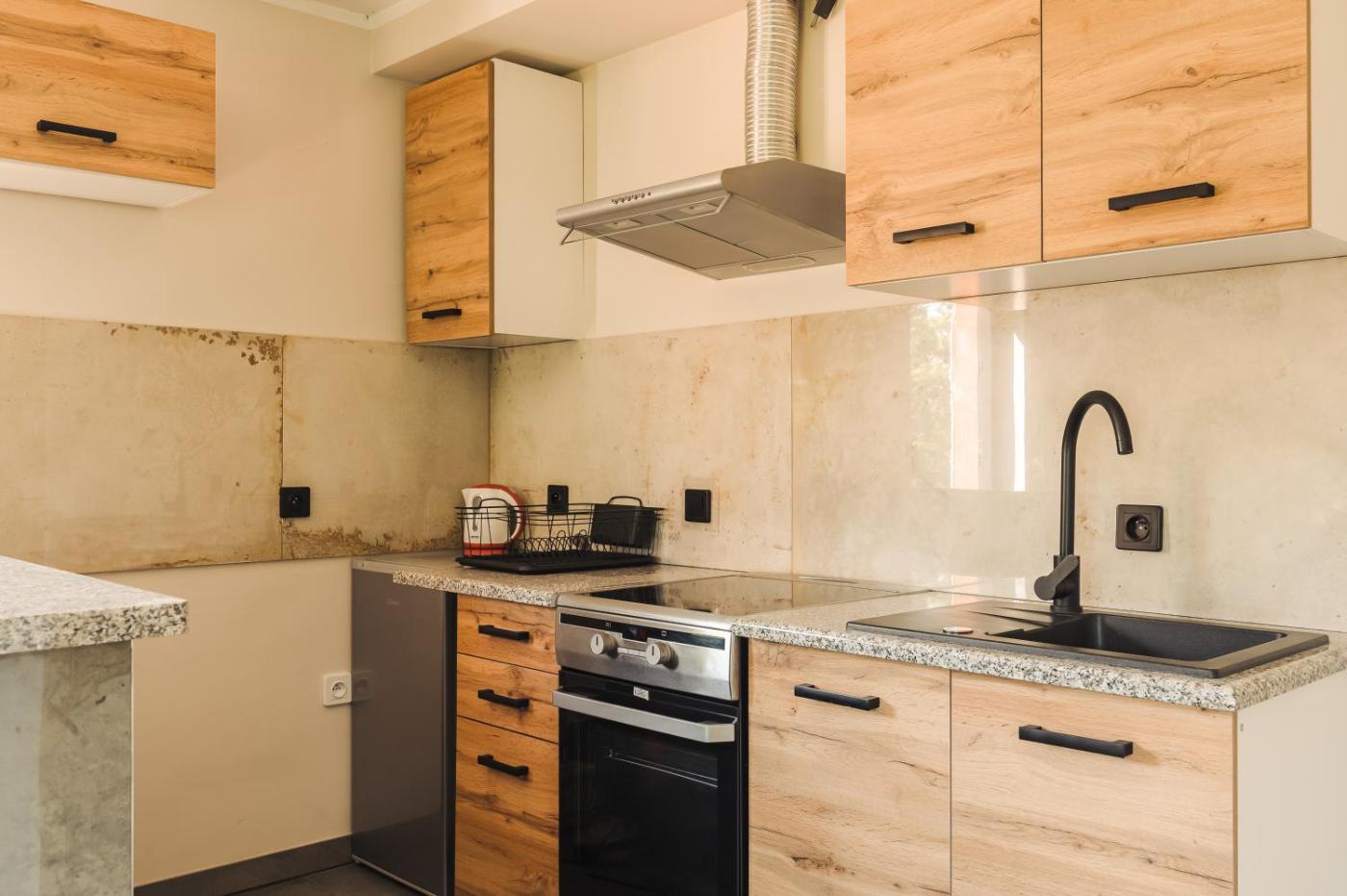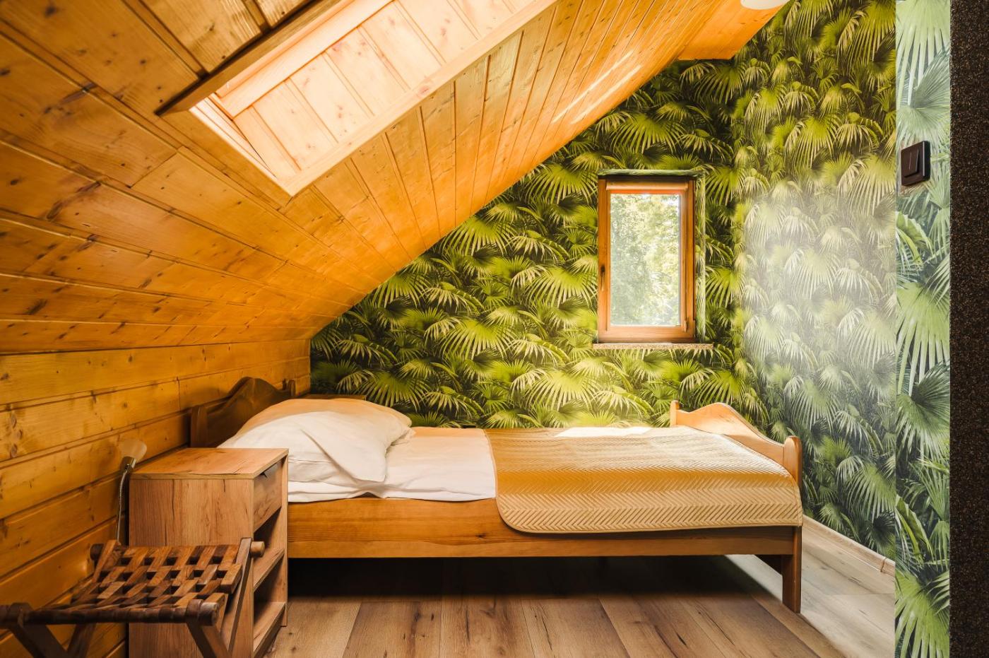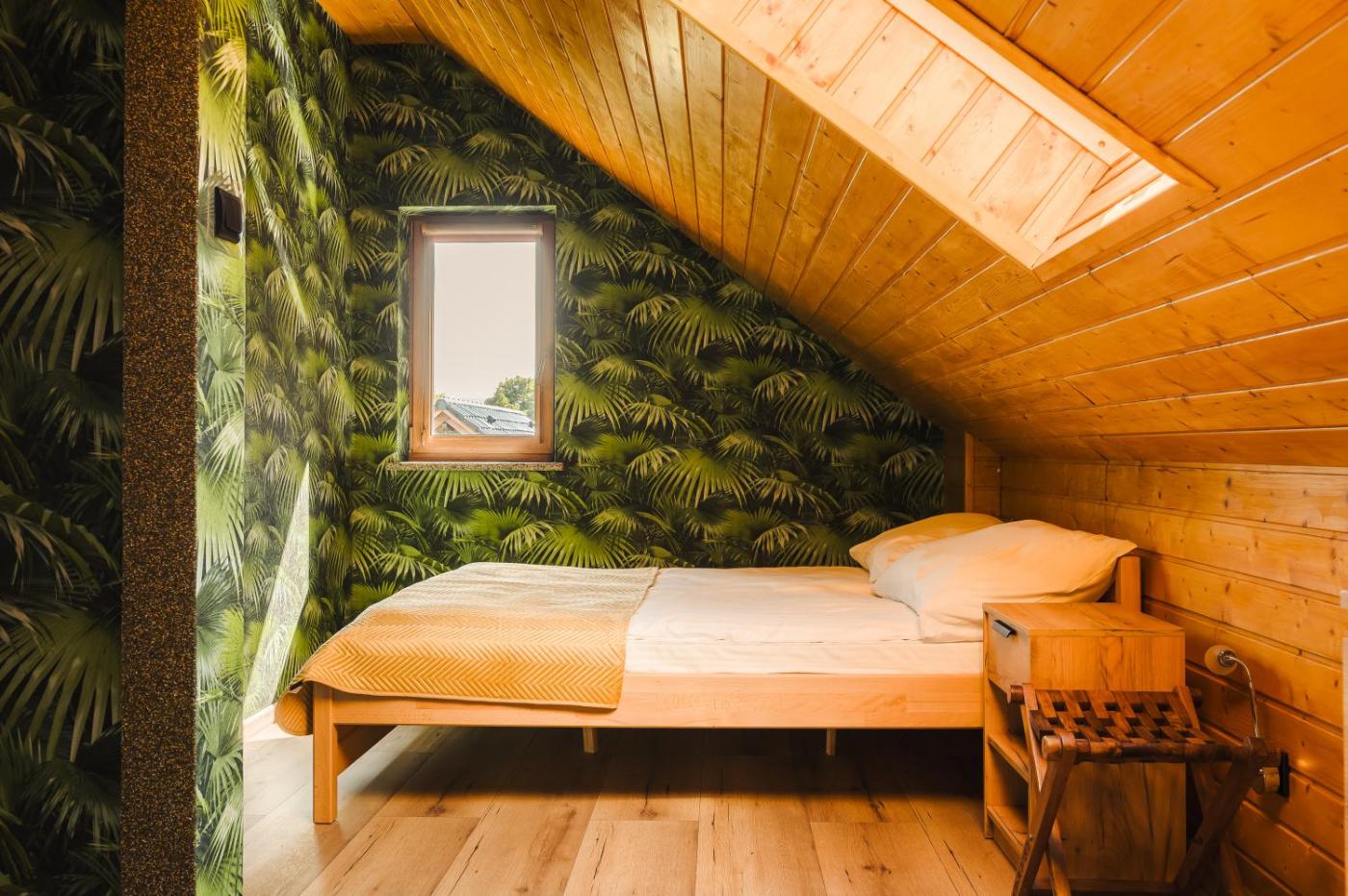 Dom z 2 sypialniami. The sauna and fireplace are the standout features of this holiday home. Meals can be prepared in the well-fitted kitchen, which comes with a stovetop, a refrigerator, an oven and a tea and coffee maker. Among the room amenities are a private entrance, a seating area, a dining area as well as an outdoor dining area and garden views. The unit offers 2 beds. Dom wakacyjny - 4 osobowy. Powierzchnia pokoju ok.: 35 mkw.
