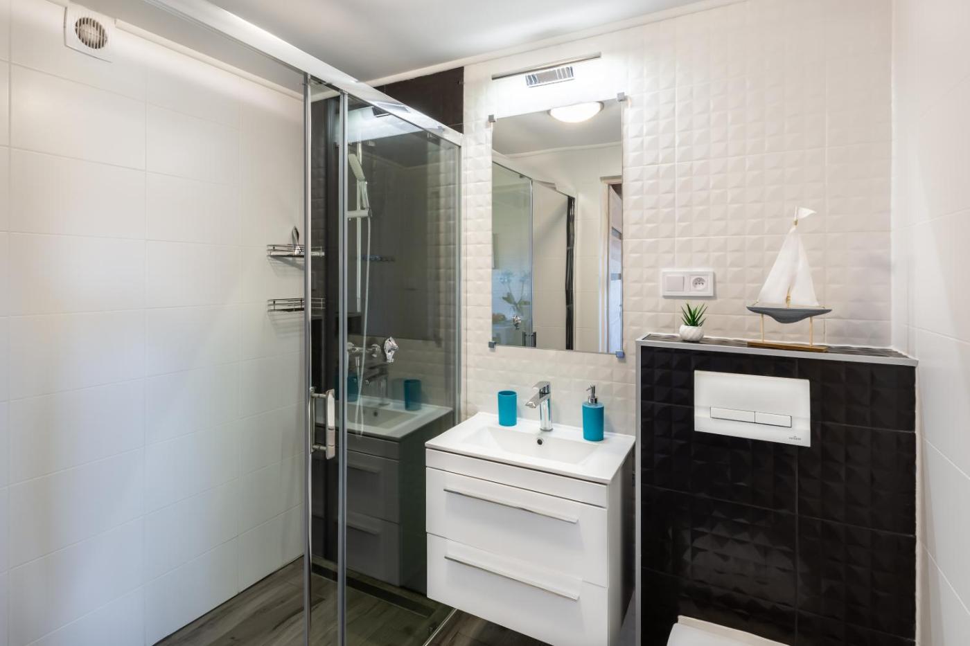 Dom z 2 sypialniami. This holiday home includes 1 living room, 2 separate bedrooms and 1 bathroom with a walk-in shower and a bath or a shower. Guests will find a stovetop, a refrigerator, kitchenware and a microwave in the kitchen. The holiday home also features a barbecue. Boasting a terrace with garden views, this holiday home also offers a seating area and a flat-screen TV. The unit has 5 beds. Dom wakacyjny - 8 osobowy. Powierzchnia pokoju ok.: 50 mkw.