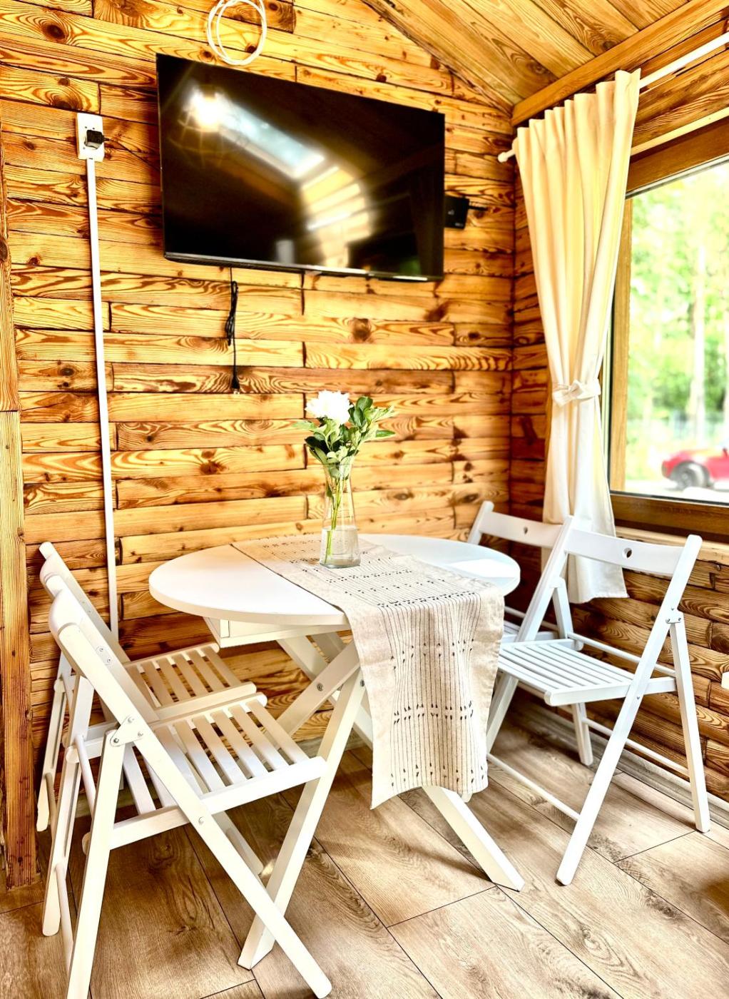 Dom z 2 sypialniami. The sauna is the standout feature of this holiday home. Guests will find a stovetop, a refrigerator, kitchenware and a toaster in the kitchen. The holiday home also comes with a barbecue. The holiday home features air conditioning, a private entrance, a tea and coffee maker as well as a terrace with lake views. The unit has 3 beds. Dom wakacyjny - 4 osobowy. Powierzchnia pokoju ok.: 35 mkw.