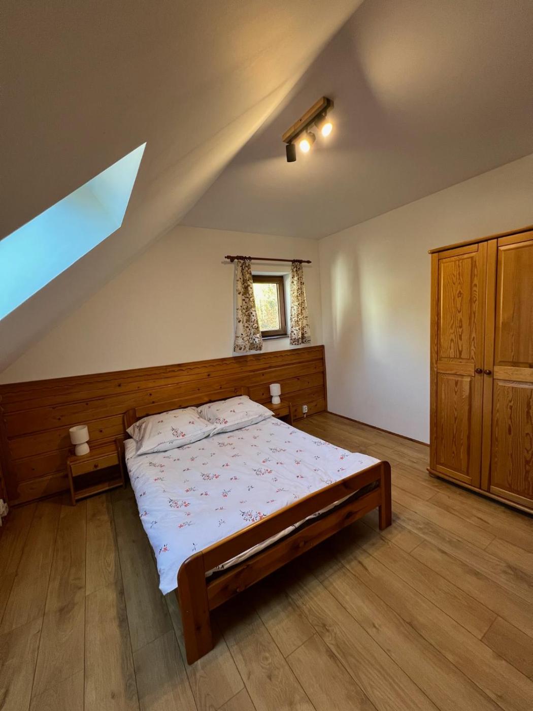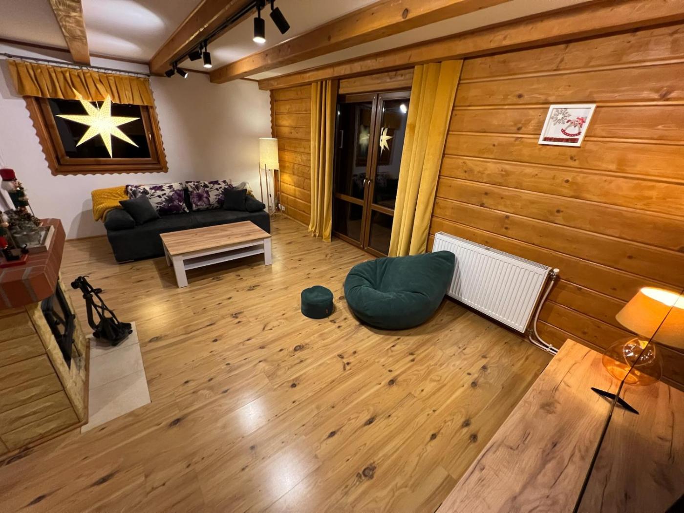 Domek. This chalets standout feature is the fireplace. This spacious chalet includes 1 living room, 4 separate bedrooms and 5 bathrooms with a bath and a shower. Guests will find a stovetop, a refrigerator, a dishwasher and kitchenware in the well-equipped kitchen. The chalet also features a barbecue. Boasting a terrace with garden views, this chalet also offers a washing machine and a flat-screen TV with streaming services. The unit has 7 beds. Domek - 12 osobowy. Powierzchnia pokoju ok.: 124 mkw.